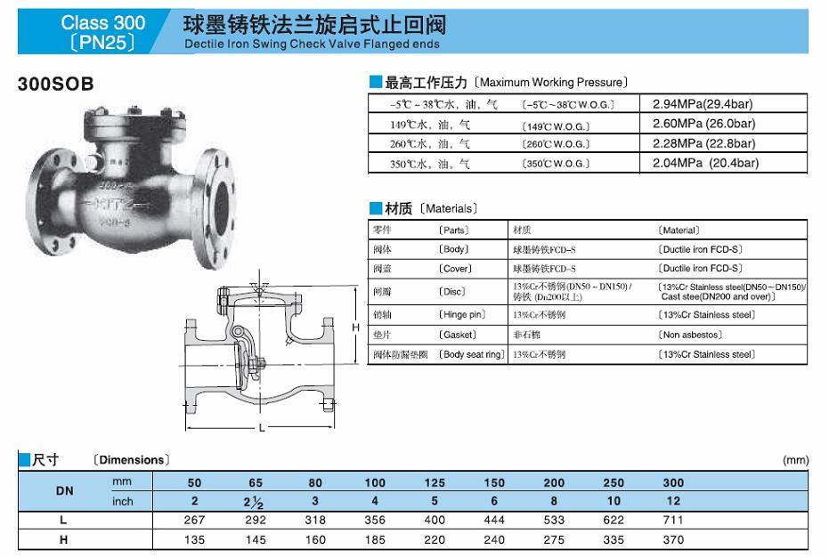 球墨鑄鐵法蘭旋啟式止回閥300SOB