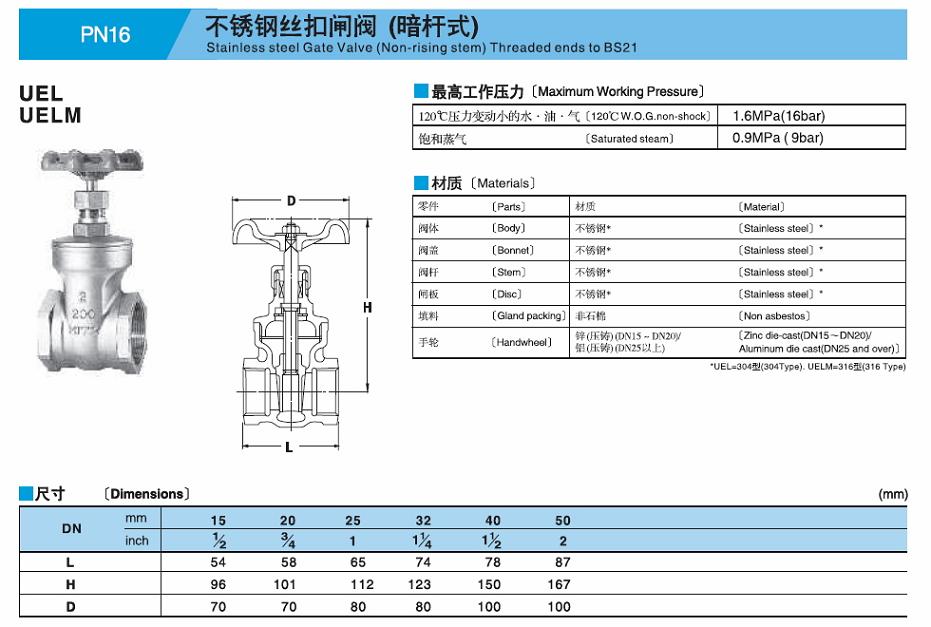 不銹鋼閘閥UEL