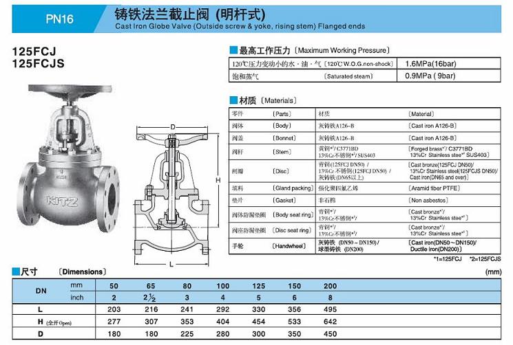 鑄鐵截止閥125FCJ