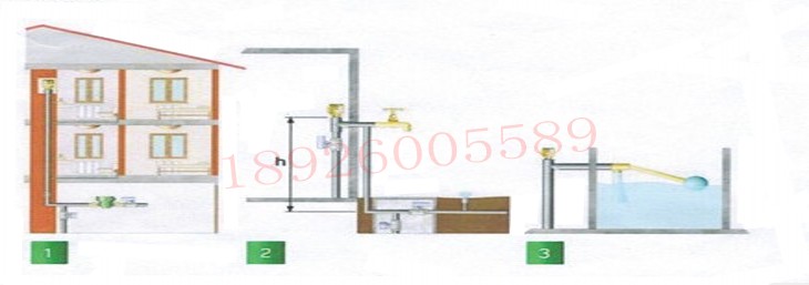 2、真空破壞閥應(yīng)安裝在管道的頂端,大氣型真空破壞閥應(yīng)高出出水口最高溢流水位150mm以上;壓力型真空破壞閥應(yīng)高出出水口最高溢流水位300mm以上。