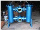 雙聯(lián)切換式過濾器,采用兩個(gè)三通球閥,將兩個(gè)單筒過濾器組裝在一個(gè)機(jī)座上,清洗過濾器時(shí)不必停車,保證其連續(xù)工作。